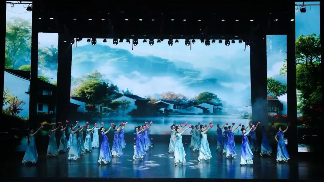 展演现场灯光璀璨、气氛热烈,座无虚席,广大慈溪市民齐聚一堂,共同见证这场跨越千里的文化相逢。演出在朝鲜族独具特色的长鼓舞中拉开帷幕。长鼓舞作为朝鲜族最具代表性的舞蹈,以刚柔并济的舞姿,生动诠释了朝鲜族人民热情奔放、乐观向上的精神风貌。随后,慈溪市文化馆艺术团的舞蹈演员们带来了广场舞《水乡幸福路》,用舞姿表现了江南水乡的柔美,赢得了台下观众阵阵热烈掌声与喝彩,将现场气氛推向高潮。